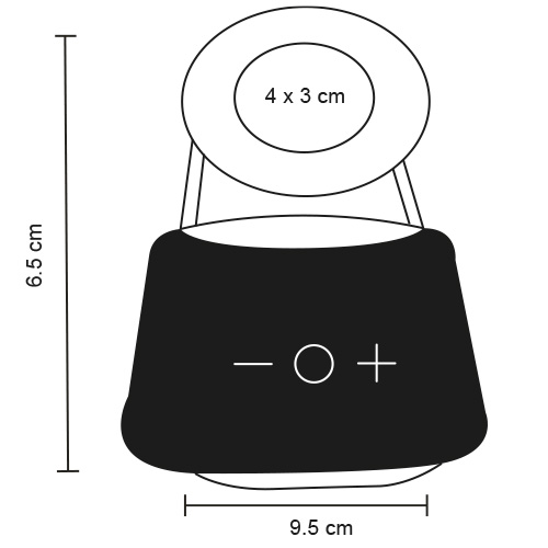 Bocina con bluetooth con controles adelante/atrás, play/pausa y carga tipo C. Cuenta con brazo retráctil que sirve como cargador wireless.